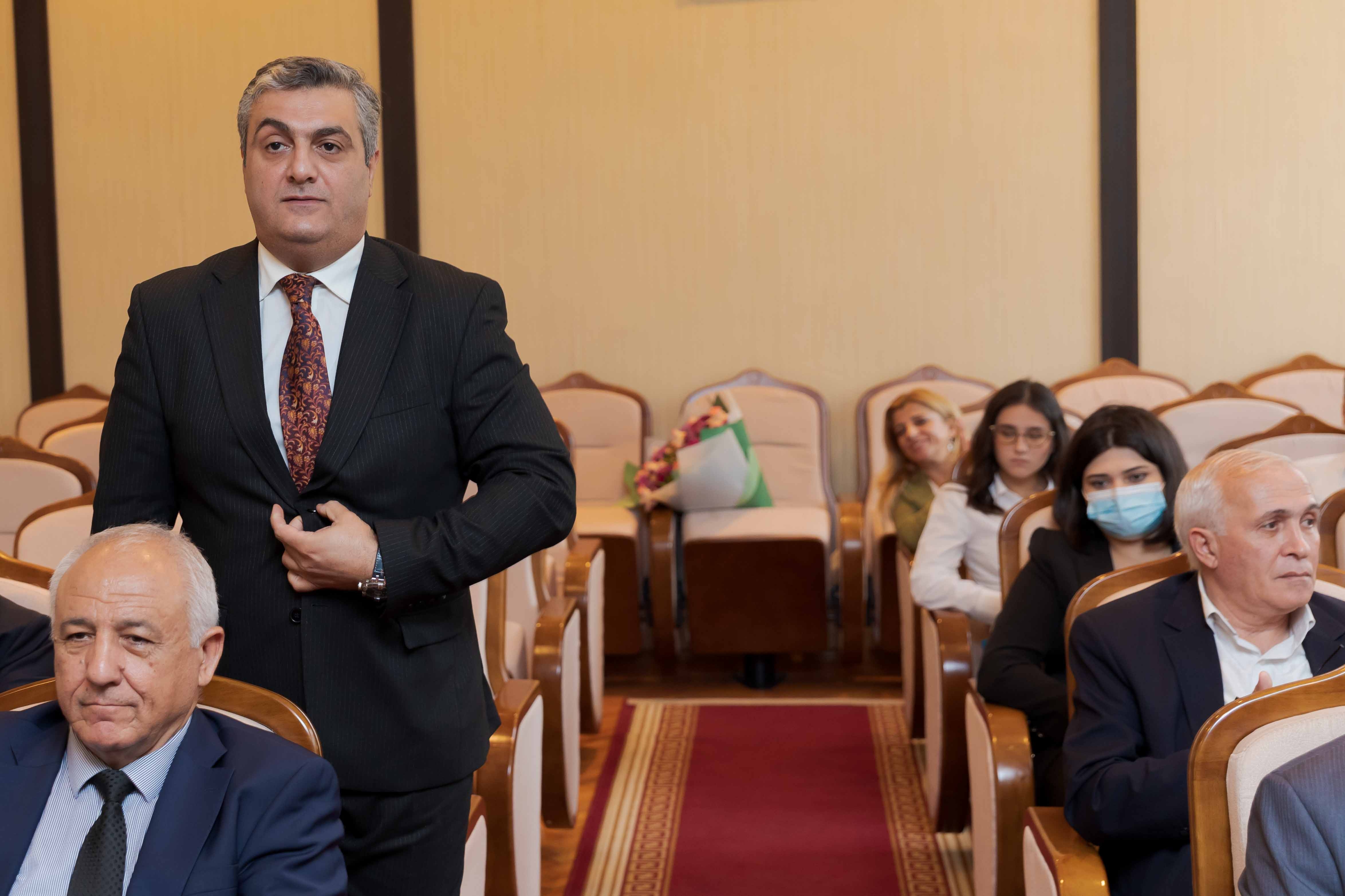 Təhsili hər bir cəmiyyətin inkişafını sürətləndirən ən mühüm sahələrdən biri kimi səciyyələndirən S.Əliyev bildirib ki, hər bir təhsil ocağının qazandığı uğurlar, təhsilalanların əldə etdikləri nailiyyətlər gələcək nəslin inkişafına öz töhfəsini verir. Burada diqqətdə saxlanılacaq ən başlıca məqam ali məktəblərdə tədrisin, təlim-tərbiyə işinin düzgün və məqsədəuyğun şəkildə aparılmasıdır. Bu baxımdan universitetin professor-müəllim, inzibati-təsərrüfat işçiləri və tədris-köməkçi heyəti, həmçinin tələbə və magistrant, doktorantlarının 2022/2023-cü hesabat ilində öz üzərlərinə düşən vəzifəni layiqincə yerinə yetirdiklərini söyləyən prorektor, tədris, tədris-metodik, elmi-tədqiqat, gənc nəslin milli zəmində tərbiyəsi, universitetin maddi-texniki bazasının möhkəmləndirilməsi və yenidən qurulması istiqamətində xeyli işlər gördüyünü, həmçinin universitetin elmi-tədqiqat hissəsinin də xeyli məhsuldar işlədiyini vurğulayıb: “Universitetin nəzdində 3 elmlər doktoru, 3 fəlsəfə doktoru üzrə dissertasiya şuraları fəaliyyət göstərməkdədir. Bu dissertasiya şuralarının ixtisaslar üzrə keçirilən elmi seminarların tərkibləri hazırlanmış və təsdiq edilmişdir. Bundan başqa, dissertasiya şuralarında müxtəlif istiqamətlər üzrə birdəfəlik dissertasiya şuraları yaradılmış və müdafiəsi keçirilmişdir. Bu dövrdə əməkdaşlarımızdan 10 nəfər professor, 14 nəfər dosent elmi adının təsdiqi üçün AAK qarşısında vəsadət qaldırmışdır.