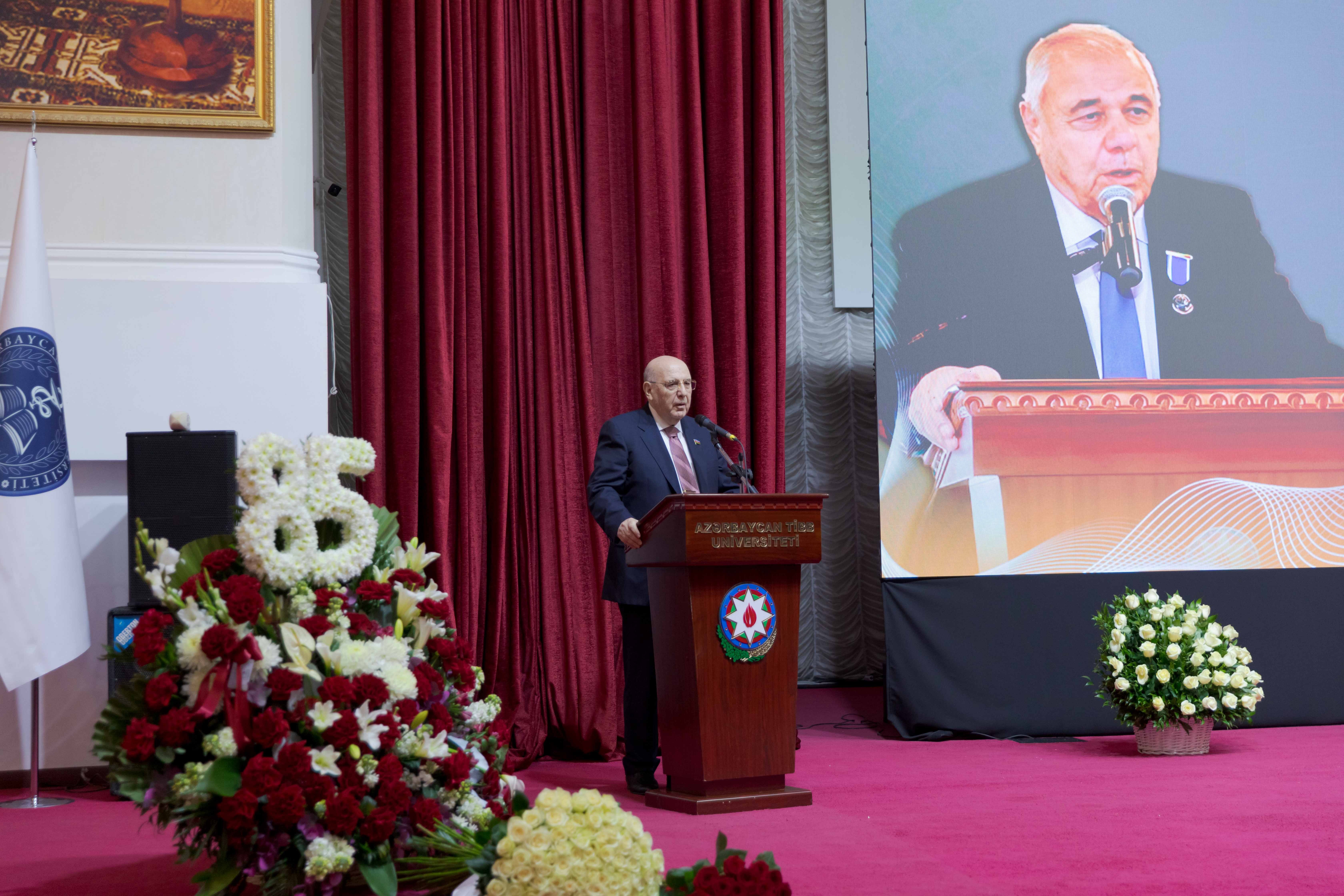 Tələbəlikdə əziz müəllimindən tibb elminin incəliklərini öyrəndiyini söyləyən rektor, sadə, səmimi, uzaqgörən və müdrik insanın yubiley yaşını bir daha bütün professor-müəllim heyəti və tələbələr adından təbrik edərək, ona möhkəm cansağlığı, uzun ömür diləyib.