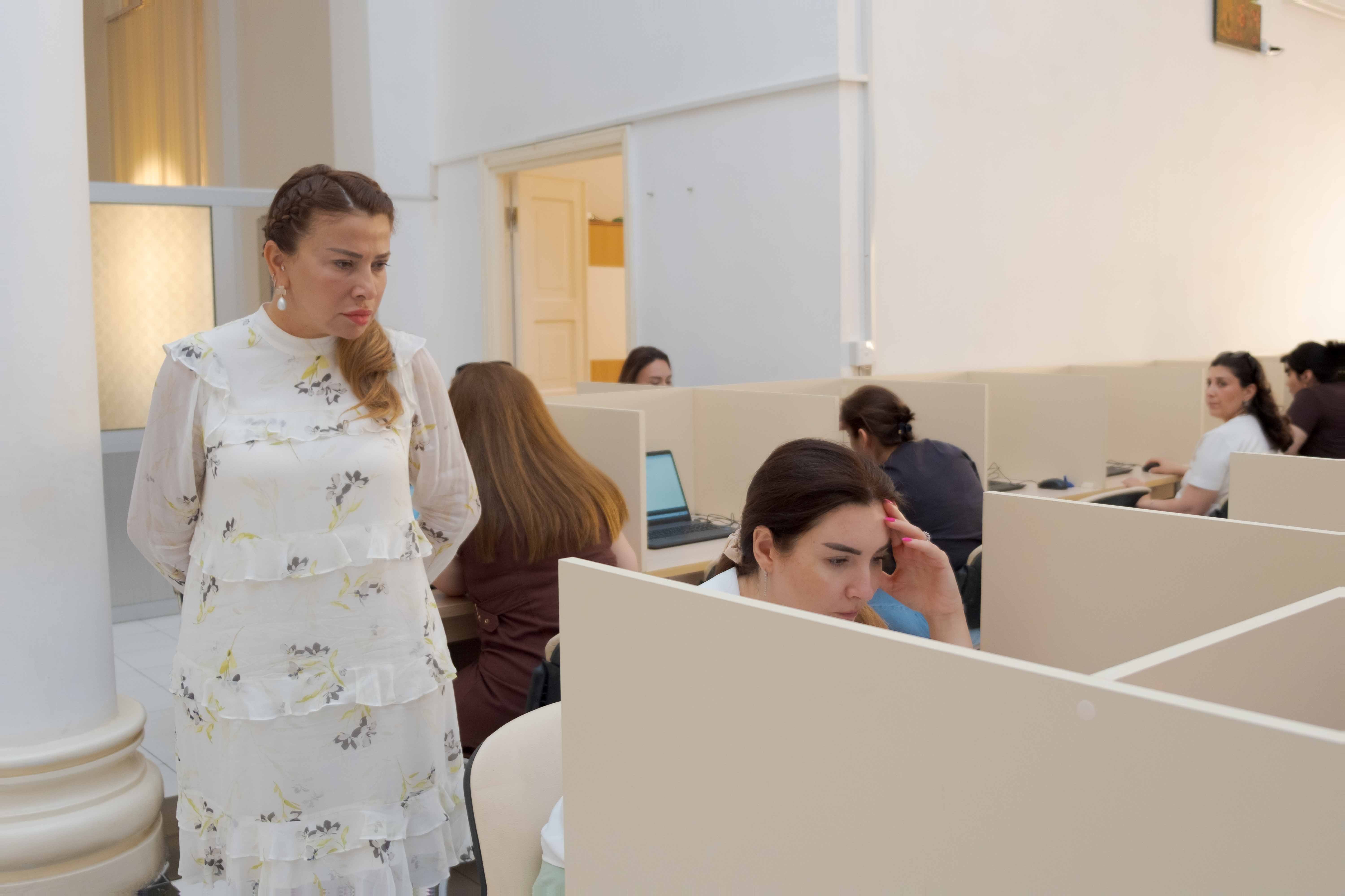 Elmi işlər üzrə prorektor, professor Məlahət Sultanova imtahanın gedişini izləyib.