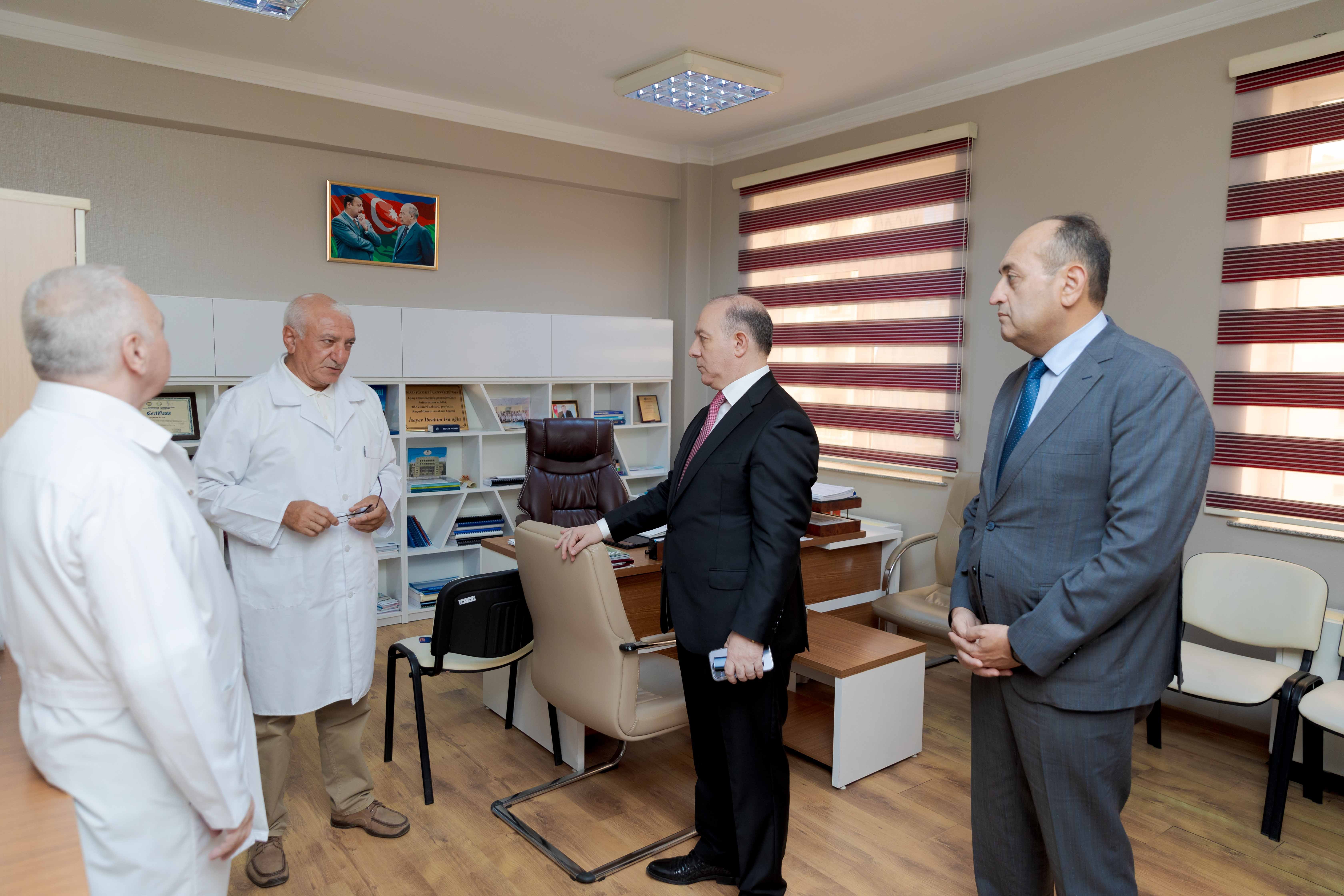Yeni tədris ilinə hazırlıq çərçivəsində Azərbaycan Tibb Universitetinin (ATU) rəhbər şəxsləri universitetin Stomatoloji, Terapevtik və Cərrahiyyə klinikalarında yerləşən kafedralara baxış keçiriblər