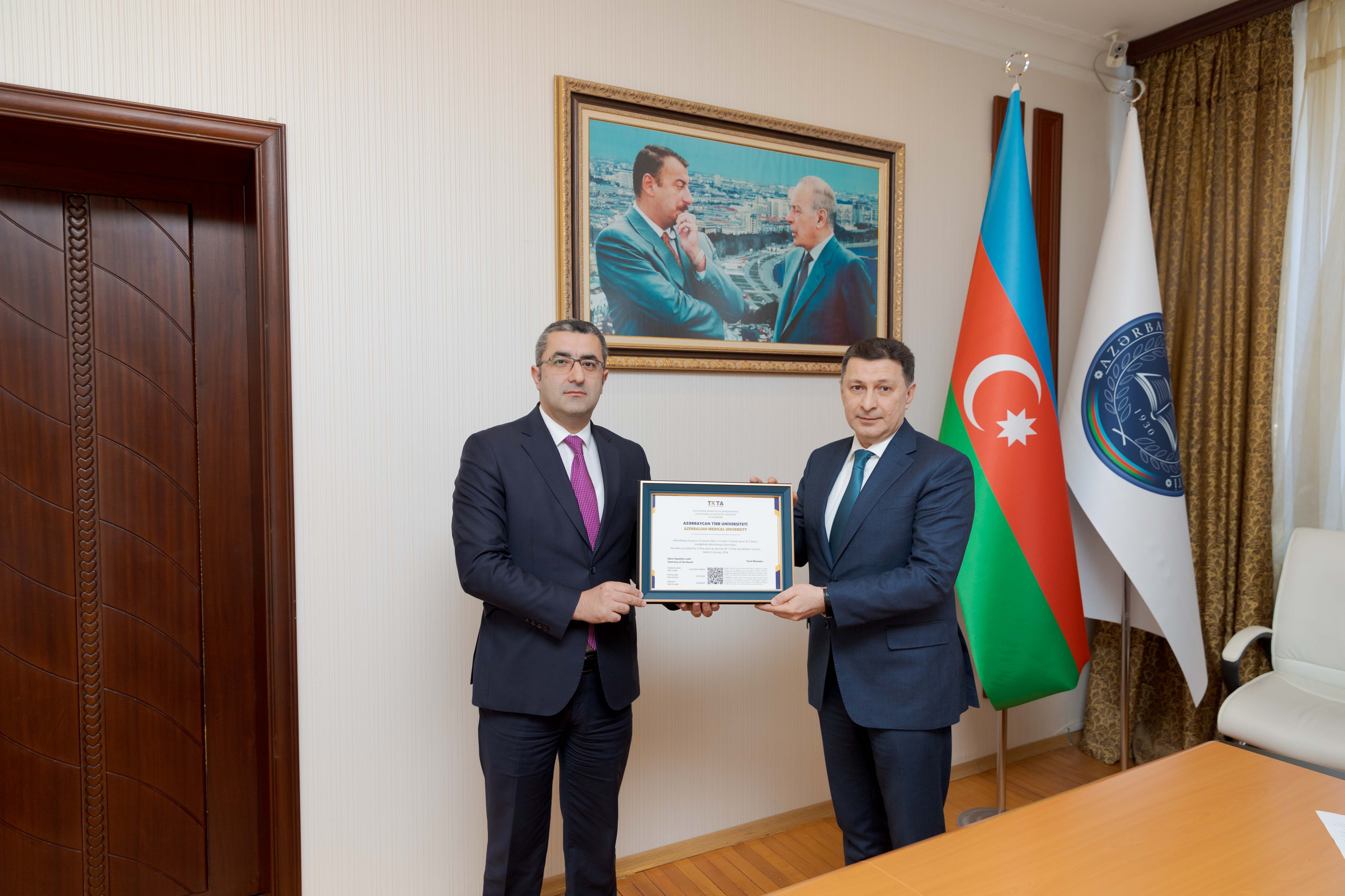 Təhsildə Keyfiyyət Təminatı Agentliyinin Akkreditasiya Şurasının qərarına əsasən, Azərbaycan Tibb Universiteti 5 il müddətinə institusional akkreditasiyanı əldə edib. Bundan əlavə, ATU-nun Müalicə işi, Stomatologiya və Əczaçılıq ixtisasları üzrə aparılmış beynəlxalq proqram akkreditasiya qiymətləndirməsinin nəticələrinin dövlət akkreditasiyası tərəfindən nəzərə alınmasına dair qərar qəbul edilib.